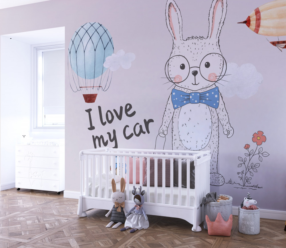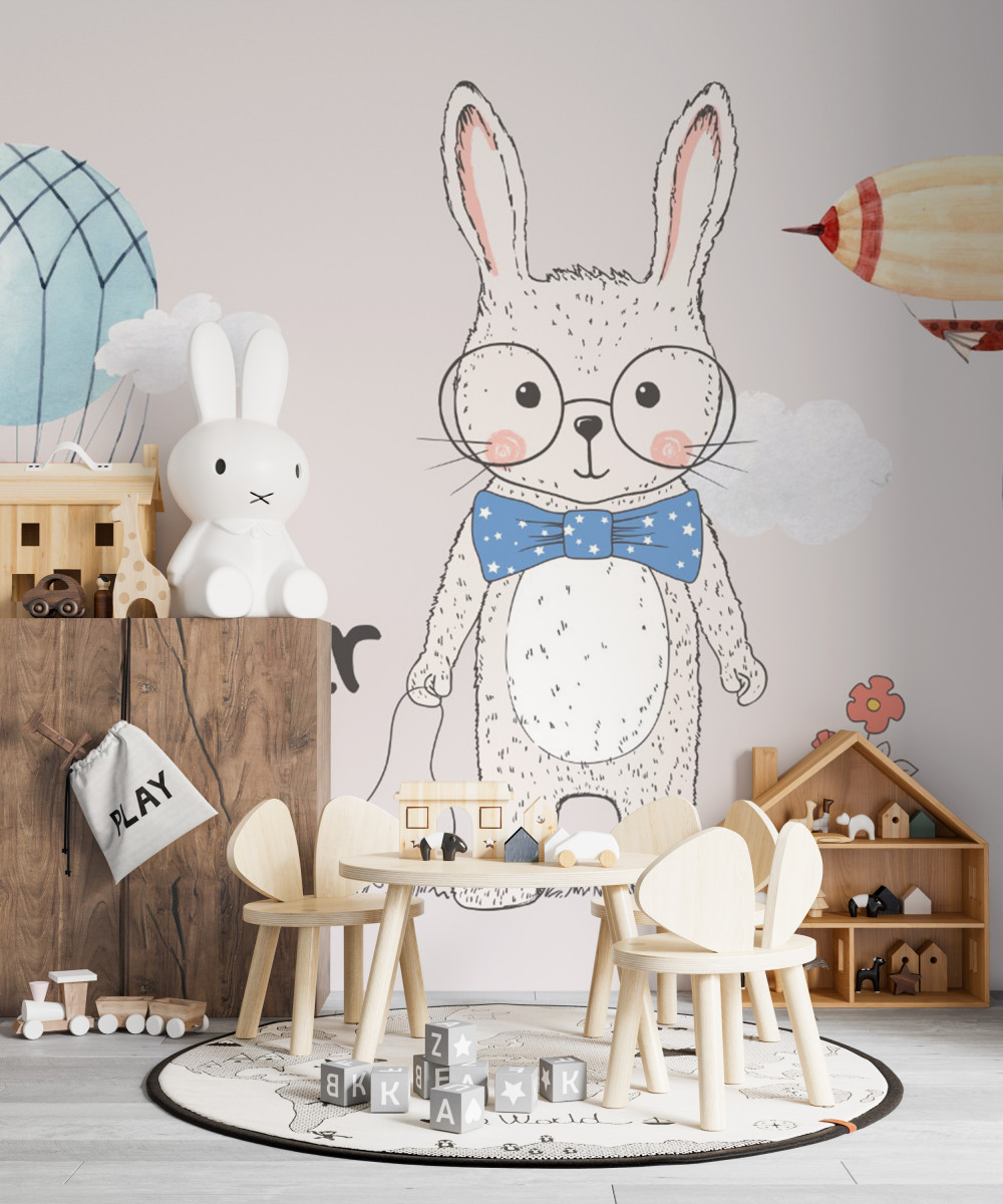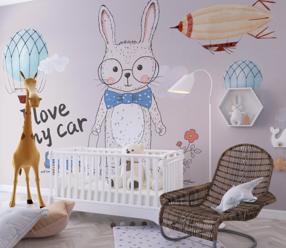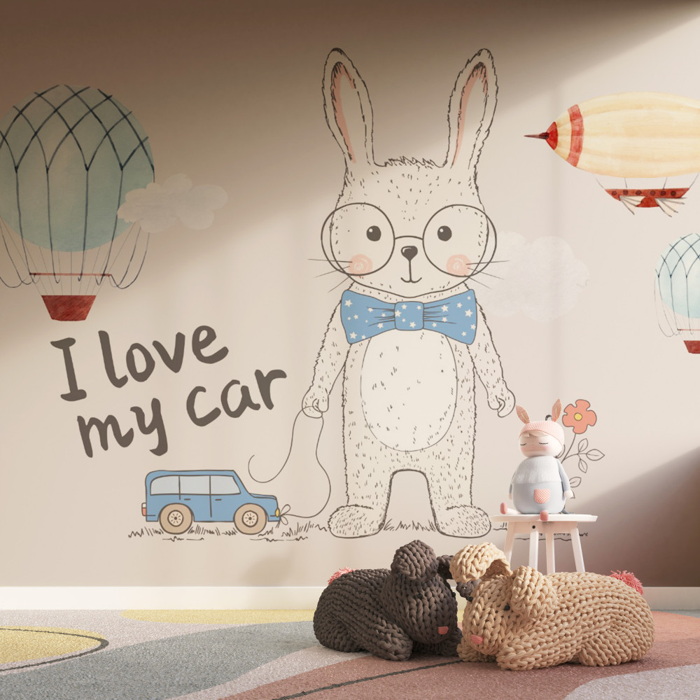 Tapeta Fototapeta królik w okularach na tle transportu (artykuł a89804 ) z kategorii Fototapety dla Dziewczynek