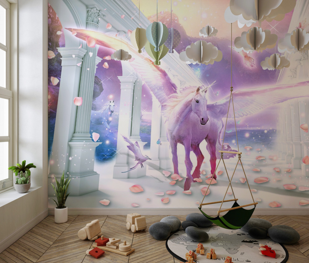 Tapeta Fototapeta latający jednorożec fantasy (artykuł a89774 ) z kategorii Fototapety dla Dziewczynek