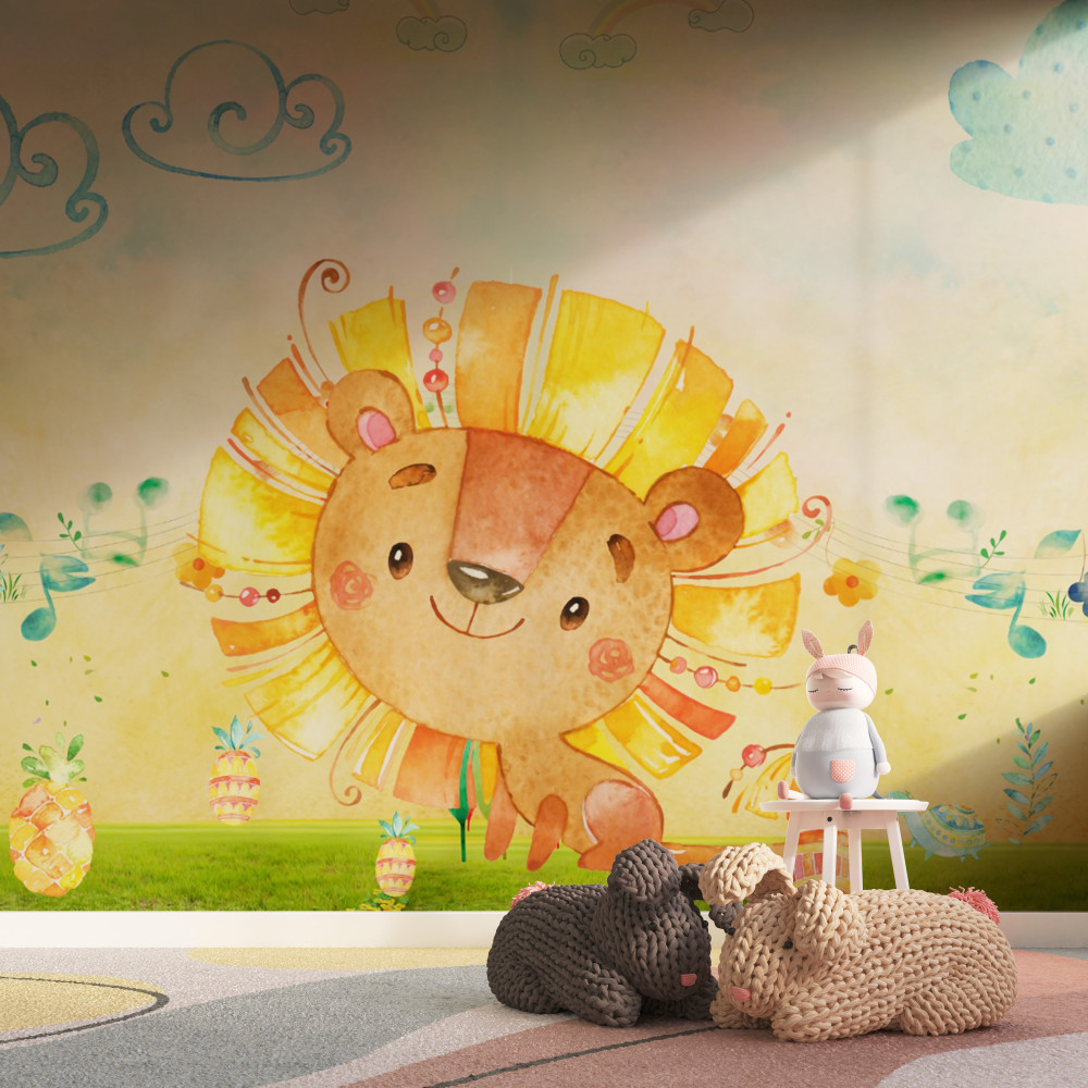 Tapeta Fototapeta uśmiechające się lwiątko na łące (artykuł a89781 ) z kategorii Fototapety dla Dziewczynek
