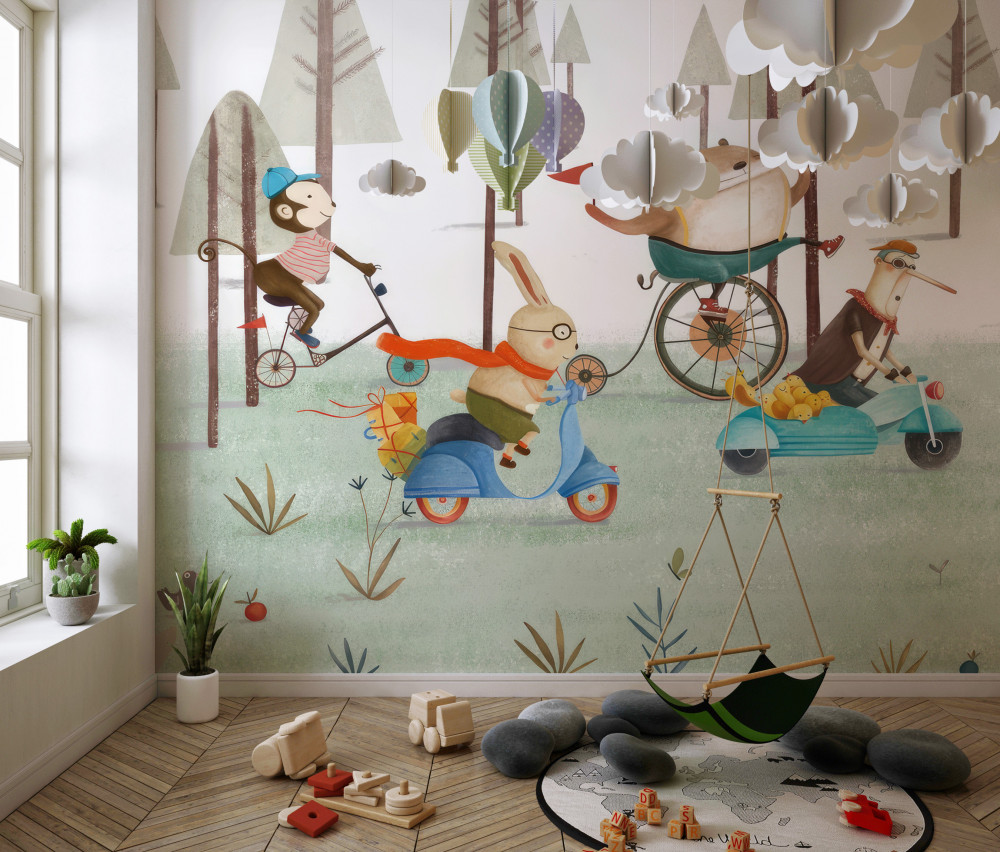 Tapeta Fototapeta wyścigi zwierząt w lesie (artykuł a90052 ) z kategorii Fototapety dla Dziewczynek