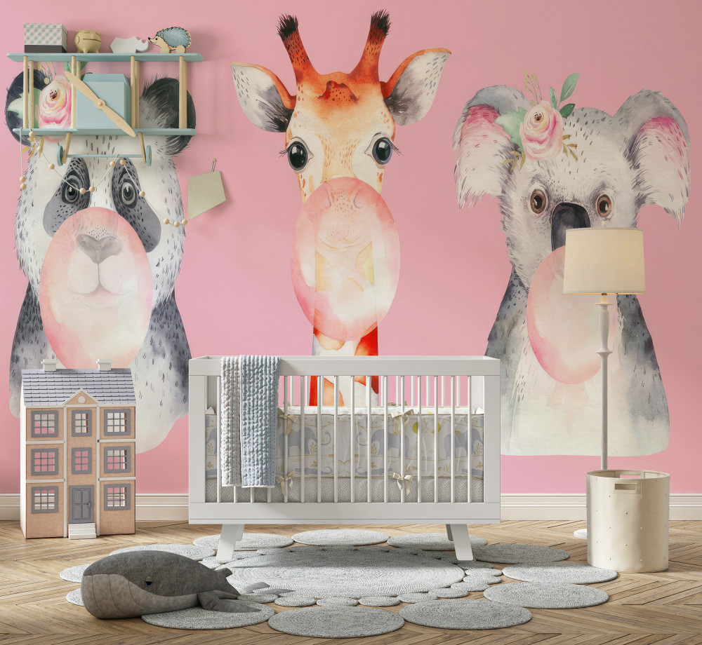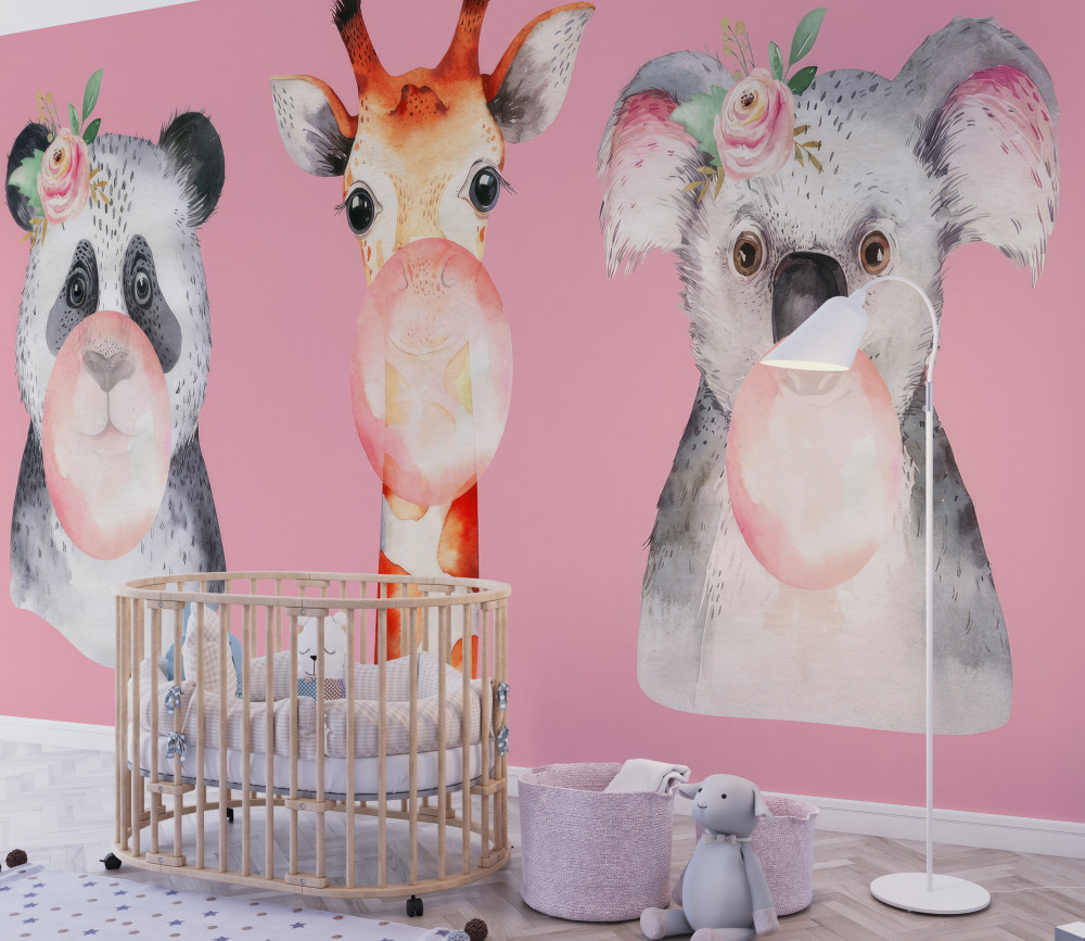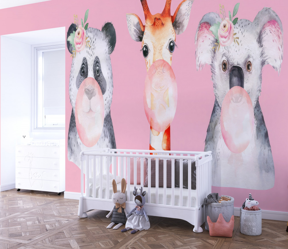 Tapeta Fototapeta zwierzęta dmuchające gumę (artykuł a90354 ) z kategorii Fototapety dla Dziewczynek