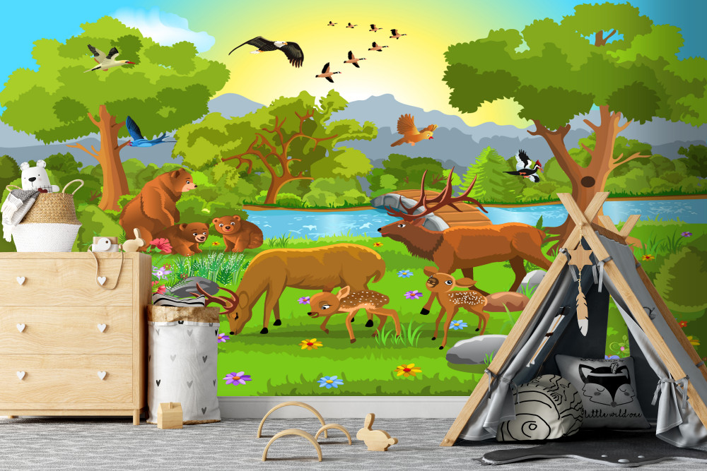 Tapeta Fototapeta zwierzęta na łące (artykuł a92291 ) z kategorii Fototapety dla Dziewczynek