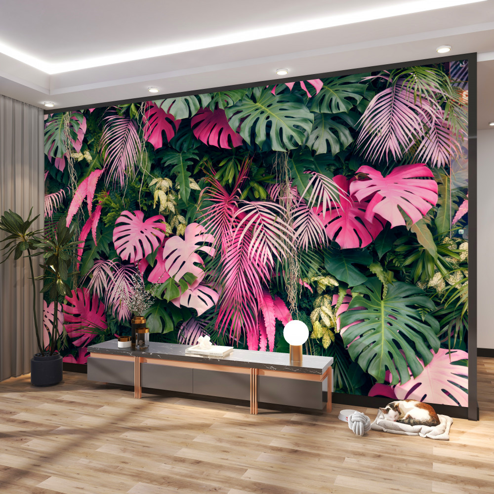 Tapeta Fototapeta jasnoróżowe liście paproci (artykuł a92689 ) z kategorii Fototapety Dżungla