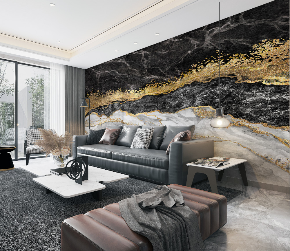 Tapeta Fototapeta biały marmur z czernią i złotem (artykuł a88208 ) z kategorii Fototapety Faktury