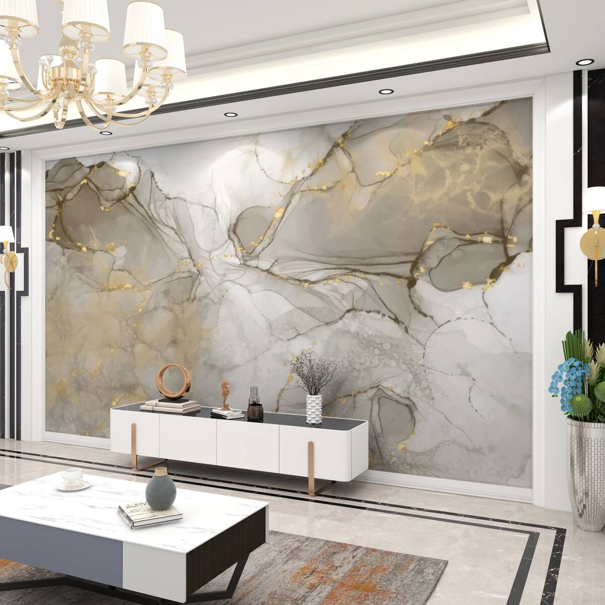 Fototapeta Biel i szarość ze złotym marmurem