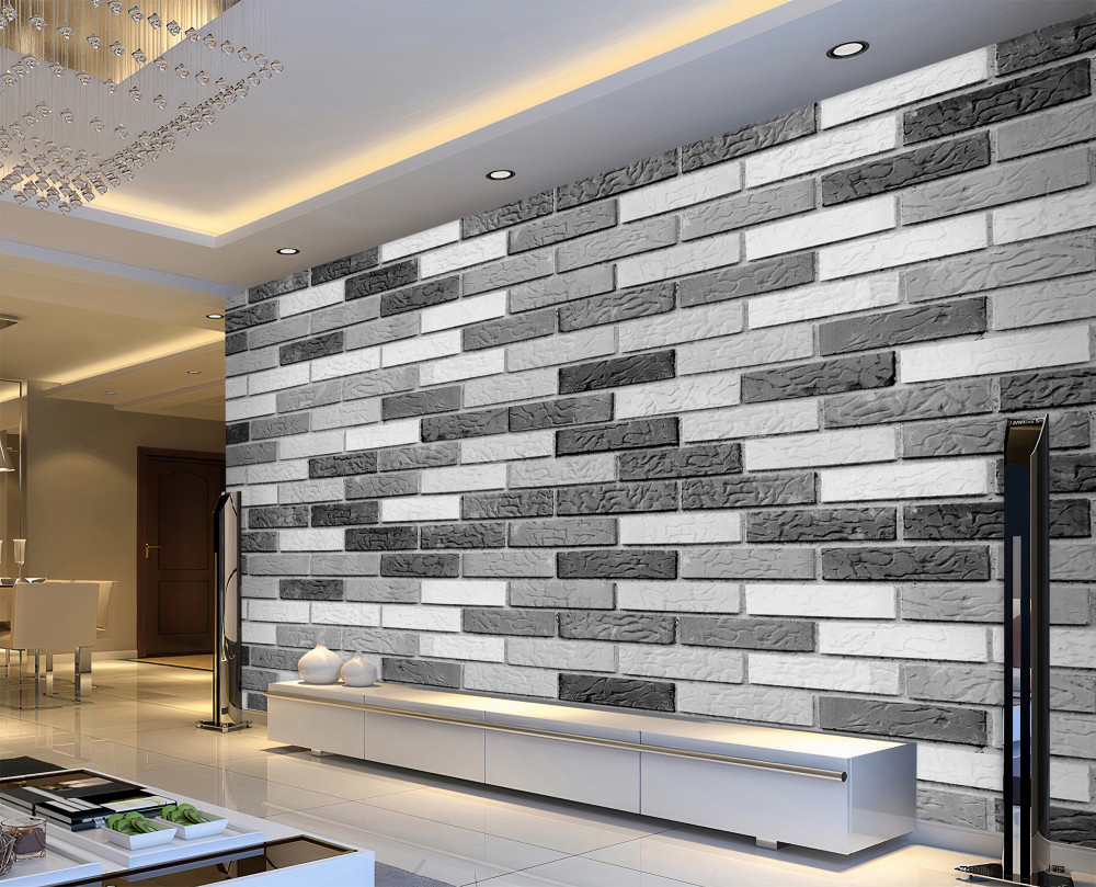 Tapeta Fototapeta czarno-biały mur z cegły (artykuł a87969 ) z kategorii Fototapety Faktury