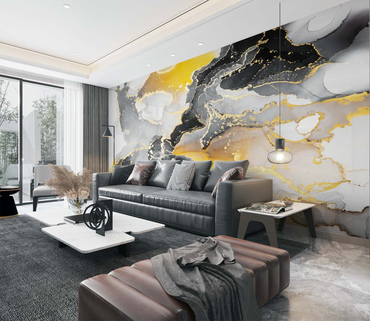Tapeta Fototapeta Czarno-złota plama na szarym marmurze (artykuł a98654 ) z kategorii Fototapety Faktury