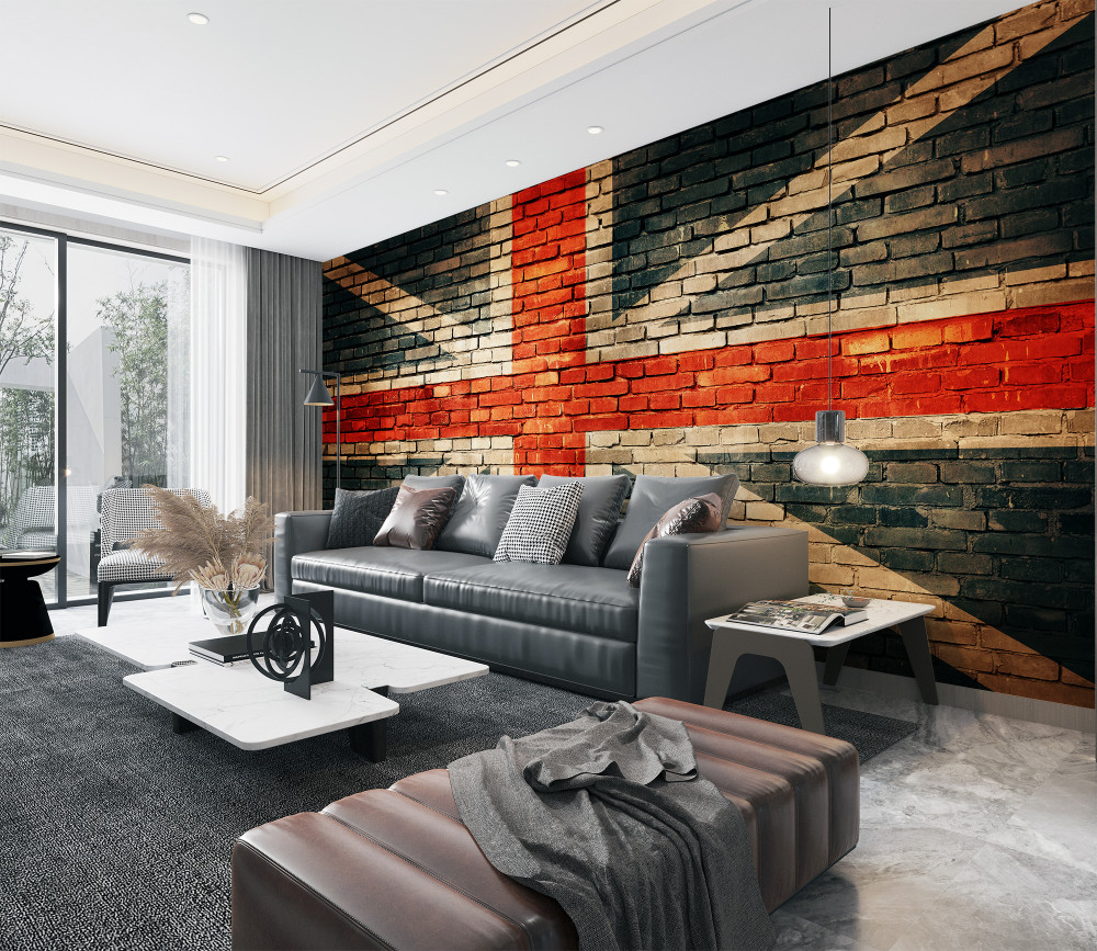 Tapeta Fototapeta Flaga Wielkiej Brytanii na ścianie z cegły (artykuł a87952 ) z kategorii Fototapety Faktury