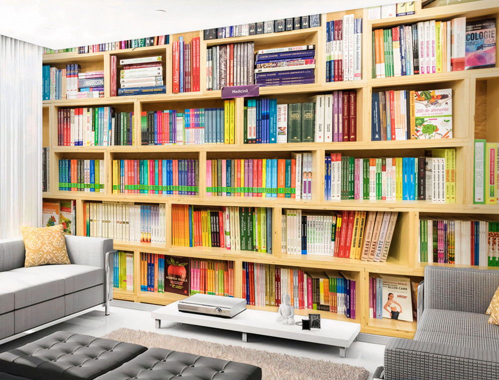 Tapeta Fototapeta książki w domowej bibliotece (artykuł a93032 ) z kategorii Fototapety Faktury