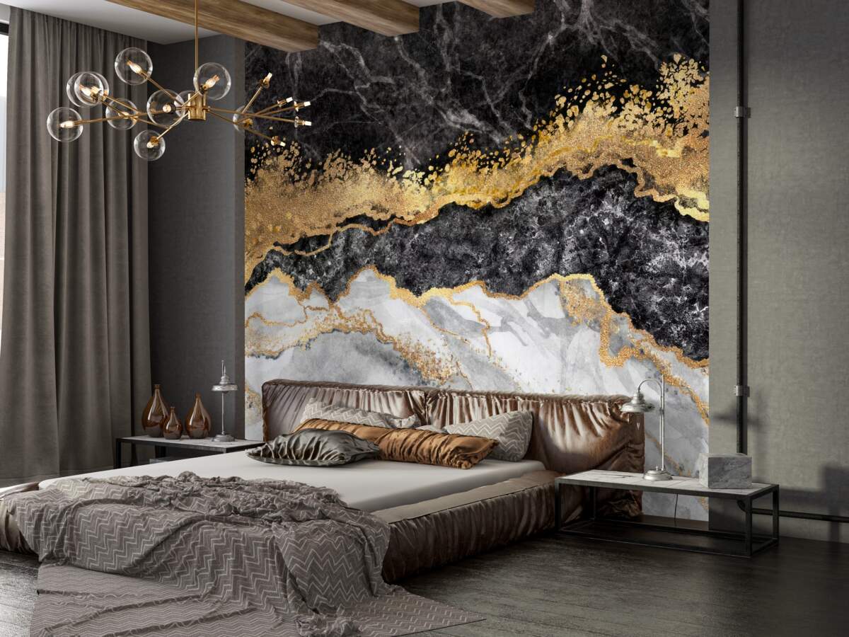 Fototapeta Marmur z czernią, bielą i złotem