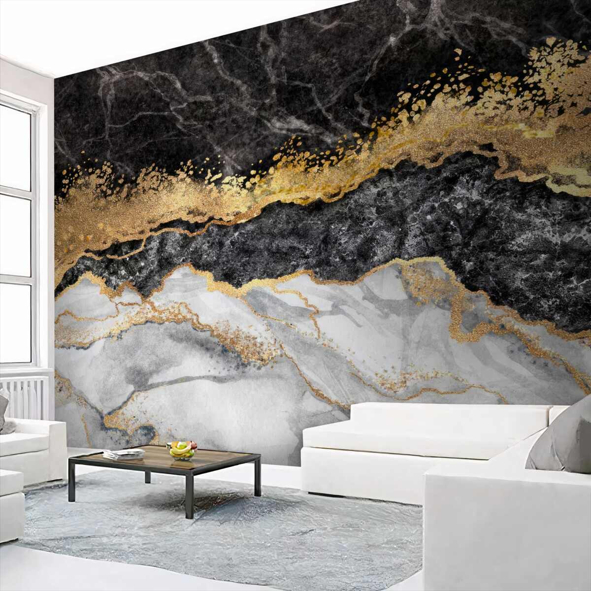 Tapeta Fototapeta Marmur z czernią, bielą i złotem (artykuł a97812 ) z kategorii Fototapety Faktury