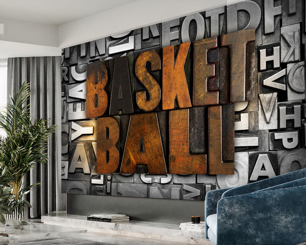Tapeta Fototapeta napis koszykówki na metalu (artykuł a92934 ) z kategorii Fototapety Faktury