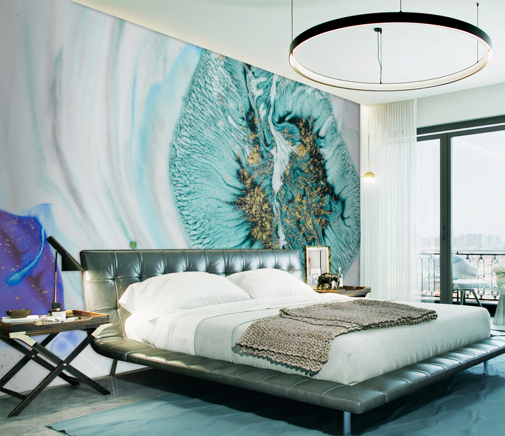 Tapeta Fototapeta niebieski abstrakcyjny kwiat na marmurze (artykuł a93128 ) z kategorii Fototapety Faktury