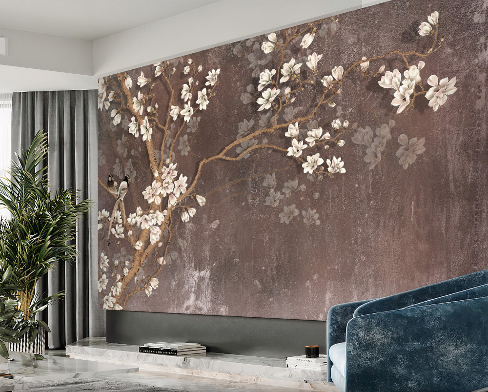 Tapeta Fototapeta para ptaków na kwitnącym drzewie (artykuł a88025 ) z kategorii Fototapety Faktury