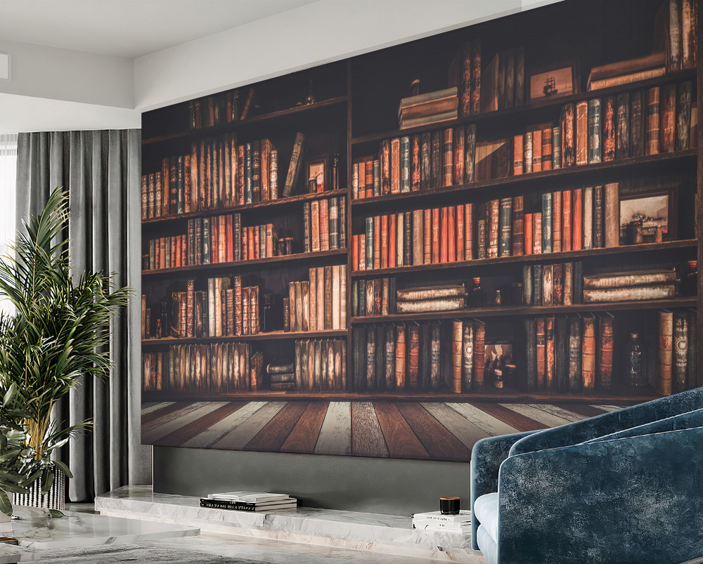Tapeta Fototapeta półki pełne książek (artykuł a87908 ) z kategorii Fototapety Faktury