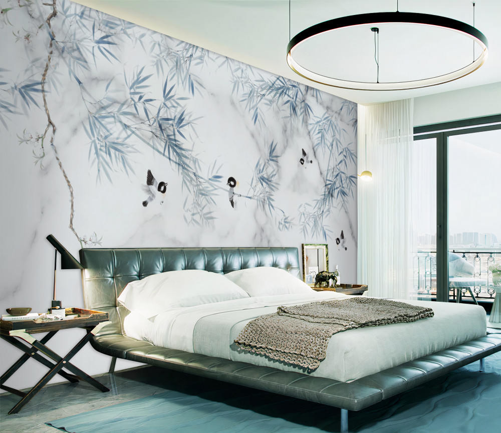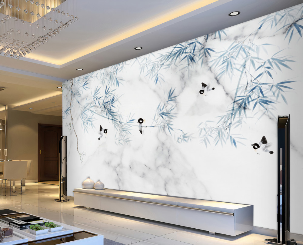 Tapeta Fototapeta ptaki na gałęziach białego marmuru (artykuł a90514 ) z kategorii Fototapety Faktury