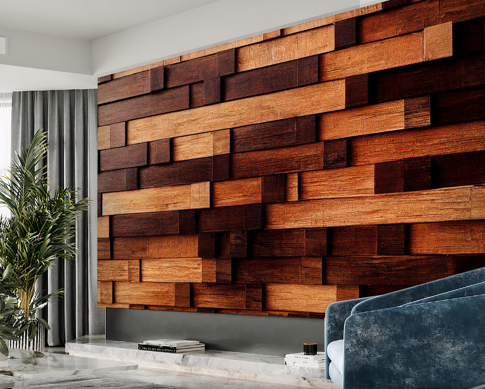 Tapeta Fototapeta ściana wykonana z ciemnych i jasnobrązowych drewnianych belek (artykuł a88153 ) z kategorii Fototapety Faktury