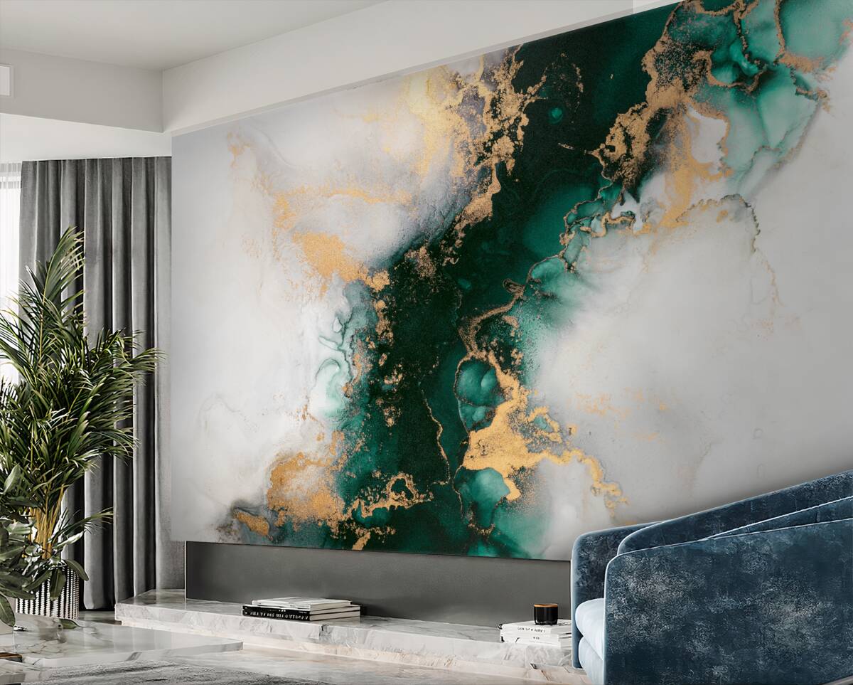 Tapeta Fototapeta Szmaragdowe kolory na białym marmurze (artykuł a98411 ) z kategorii Fototapety Faktury