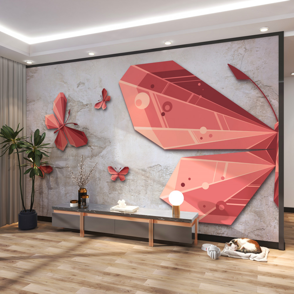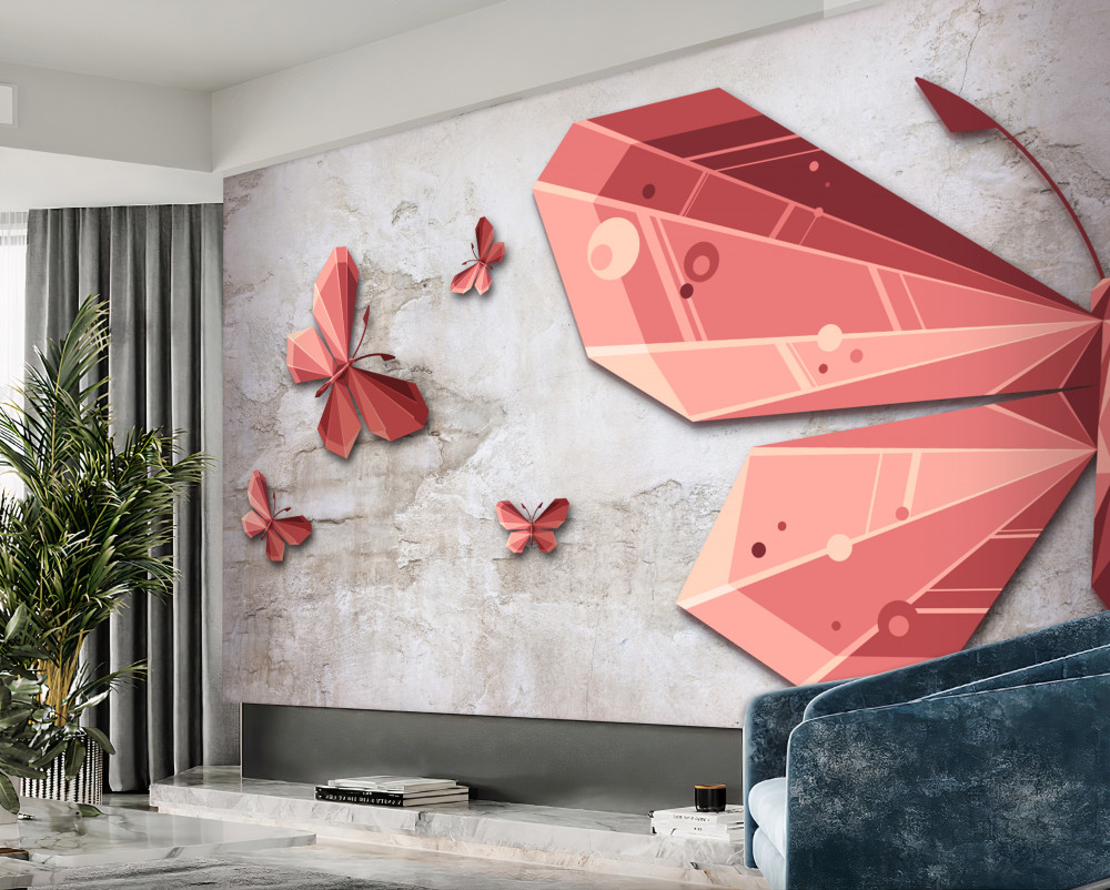 Tapeta Fototapeta trzepoczący różowy motyl (artykuł pb3348 ) z kategorii Fototapety Faktury
