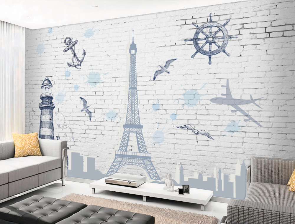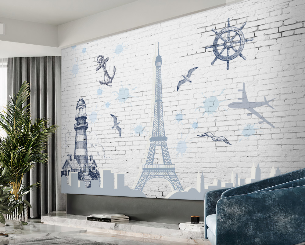 Tapeta Fototapeta Wieża Eiffla i latarnia morska na ścianie (artykuł a91866 ) z kategorii Fototapety Faktury