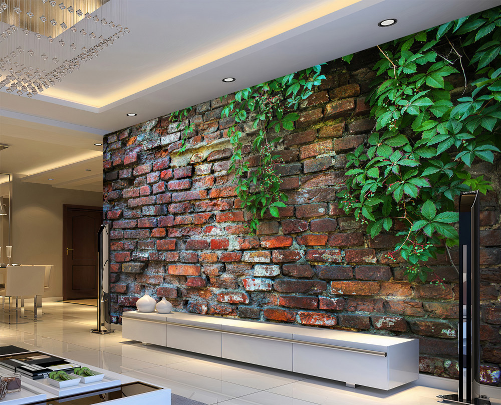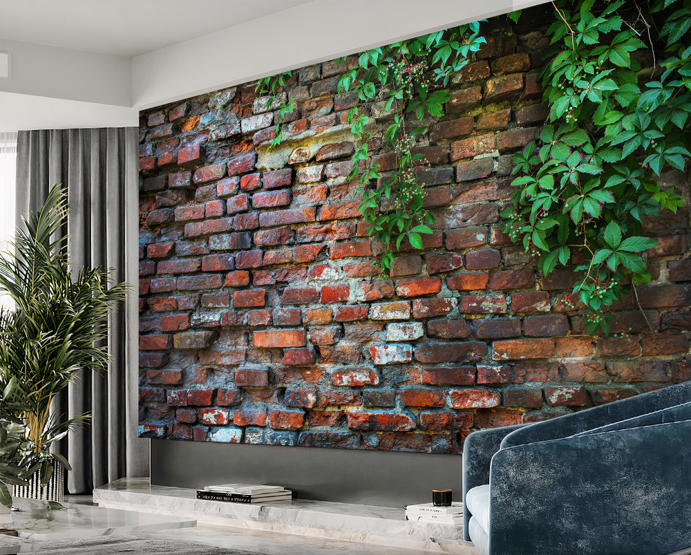 Fototapeta zieleń na starym ceglanym murze