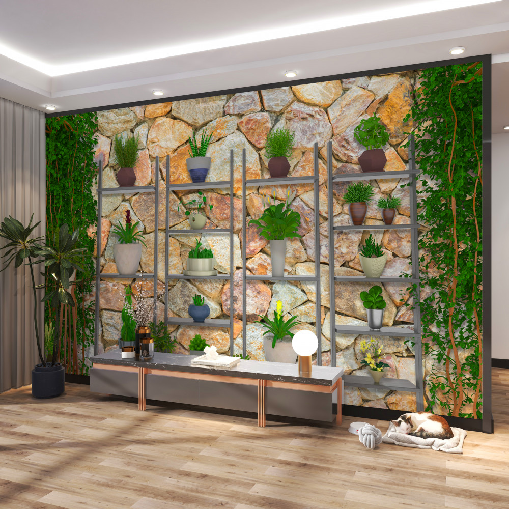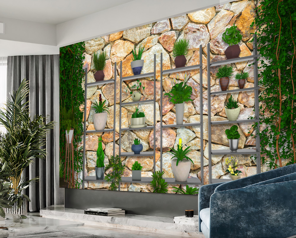 Tapeta Fototapeta zielone rośliny w doniczkach na półce (artykuł a94227 ) z kategorii Fototapety Faktury