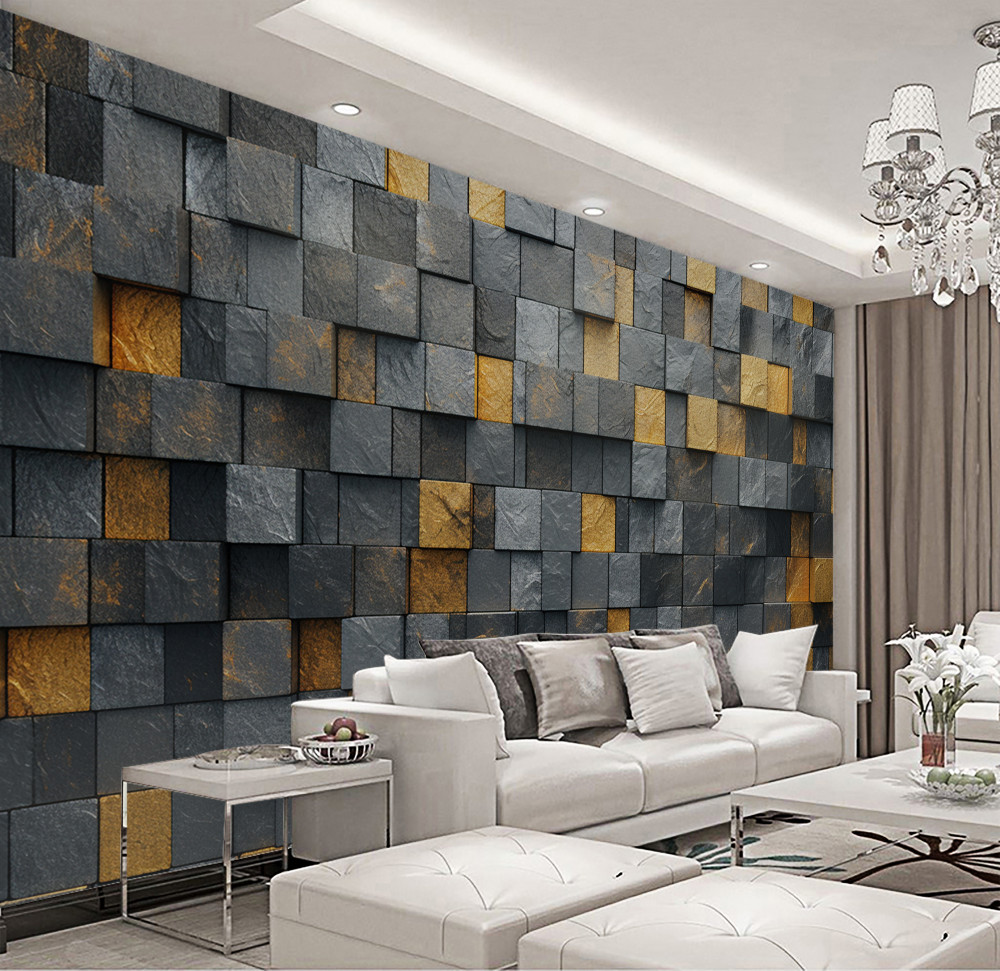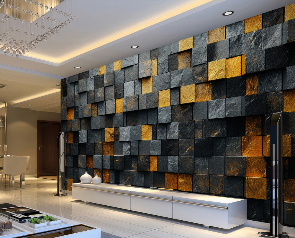 Tapeta Fototapeta szare i ciemne kwadraty zmieszane ze złotem (artykuł a93317 ) z kategorii Fototapety Geometryczne