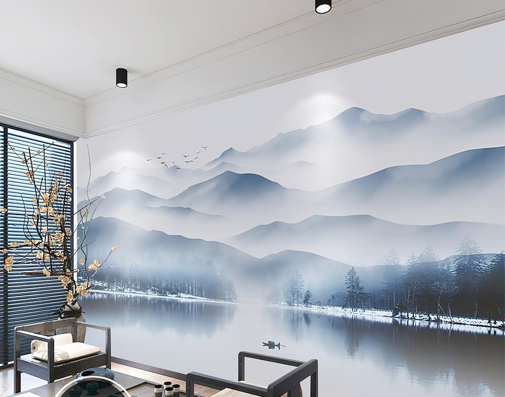 Tapeta Fototapeta jezioro góra szaro-niebieska (artykuł a3586 ) z kategorii Fototapety Góry