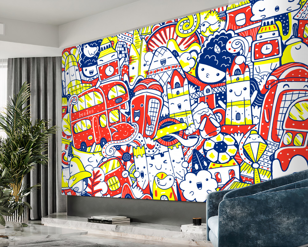 Tapeta Fototapeta graffiti na kolorowej ścianie (artykuł a93516 ) z kategorii Fototapety Graffiti