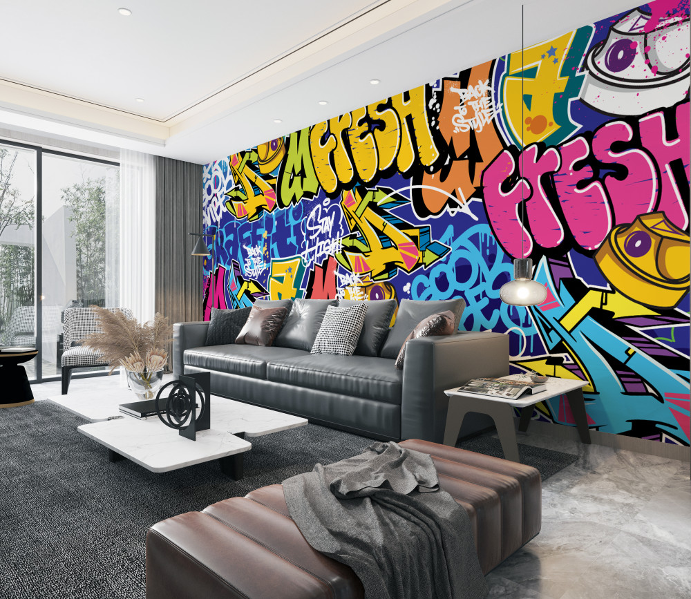 Tapeta Fototapeta jasne napisy różniące się od tekstu graffiti (artykuł a93511 ) z kategorii Fototapety Graffiti