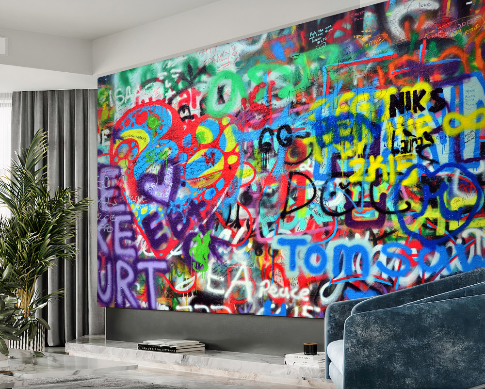 Tapeta Fototapeta napisy graffiti na ścianie (artykuł a93506 ) z kategorii Fototapety Graffiti