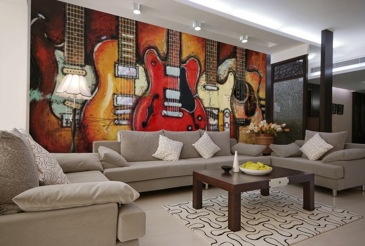 Tapeta Fototapeta Różne malowane gitary (artykuł a97423 ) z kategorii Fototapety Graffiti
