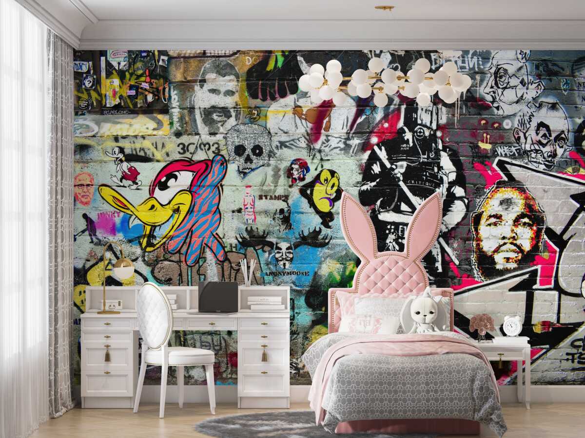 Tapeta Fototapeta Ściana pokryta graffiti (artykuł a97251 ) z kategorii Fototapety Graffiti