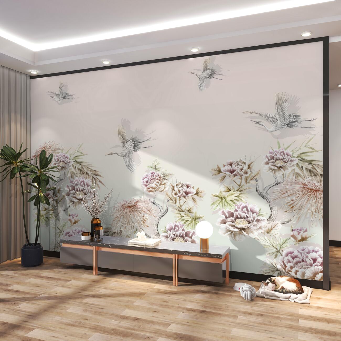 Tapeta Fototapeta Ptaki latają nad kwitnącym alkaliami (artykuł a99281 ) z kategorii Fototapety Ilustracje