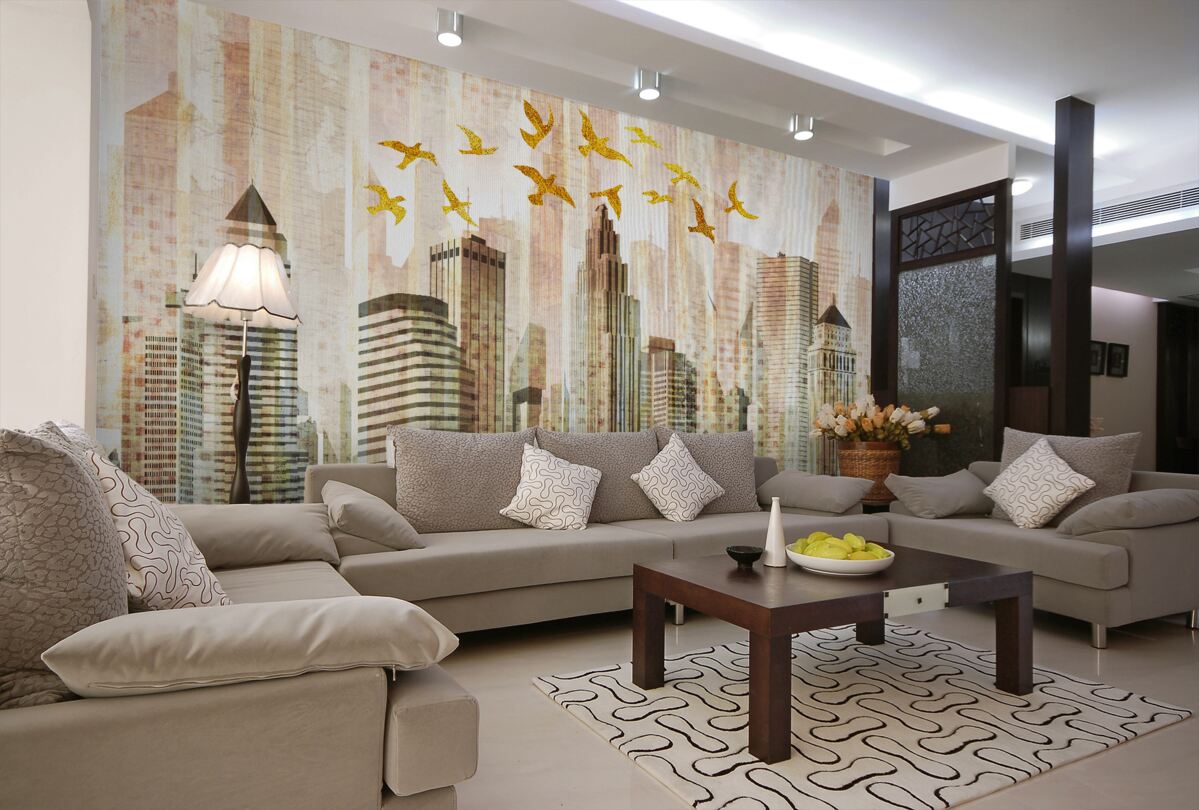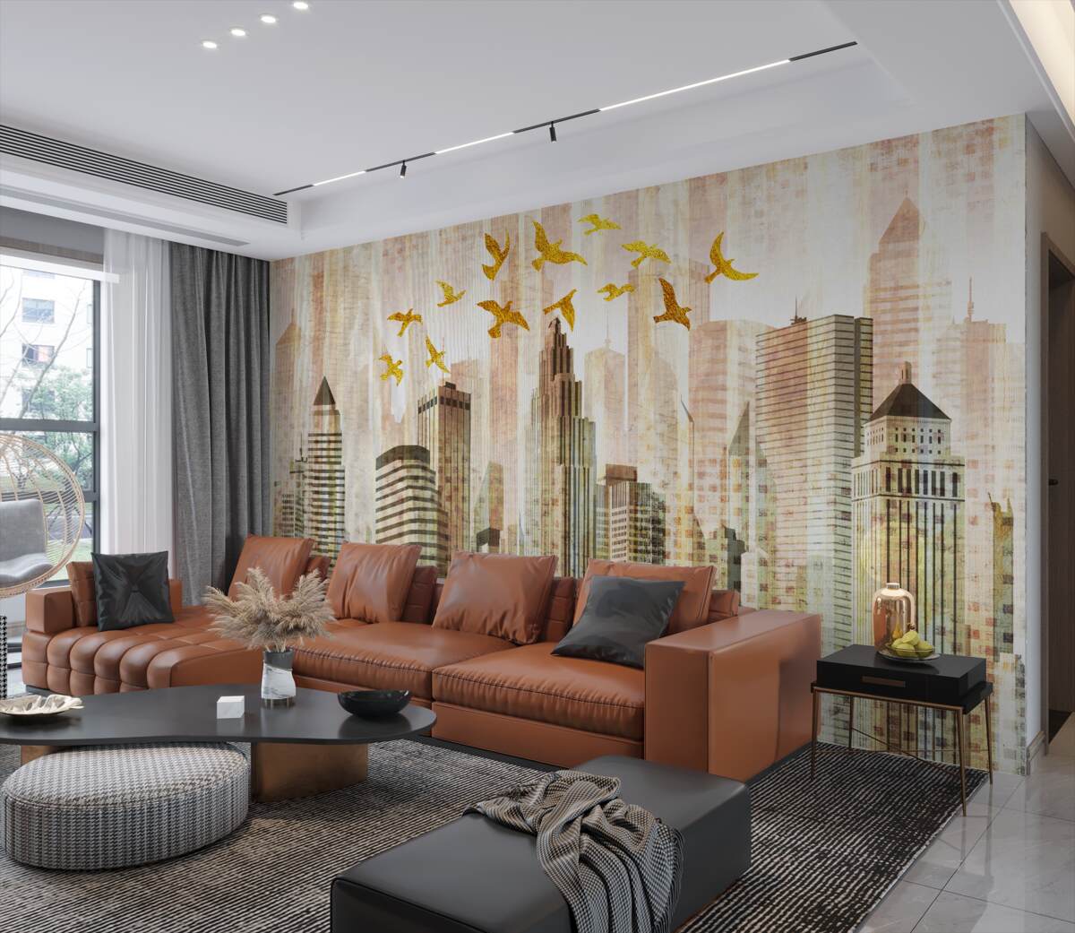Tapeta Fototapeta Ptaki nad wysokimi budynkami (artykuł a92855 ) z kategorii Fototapety Ilustracje