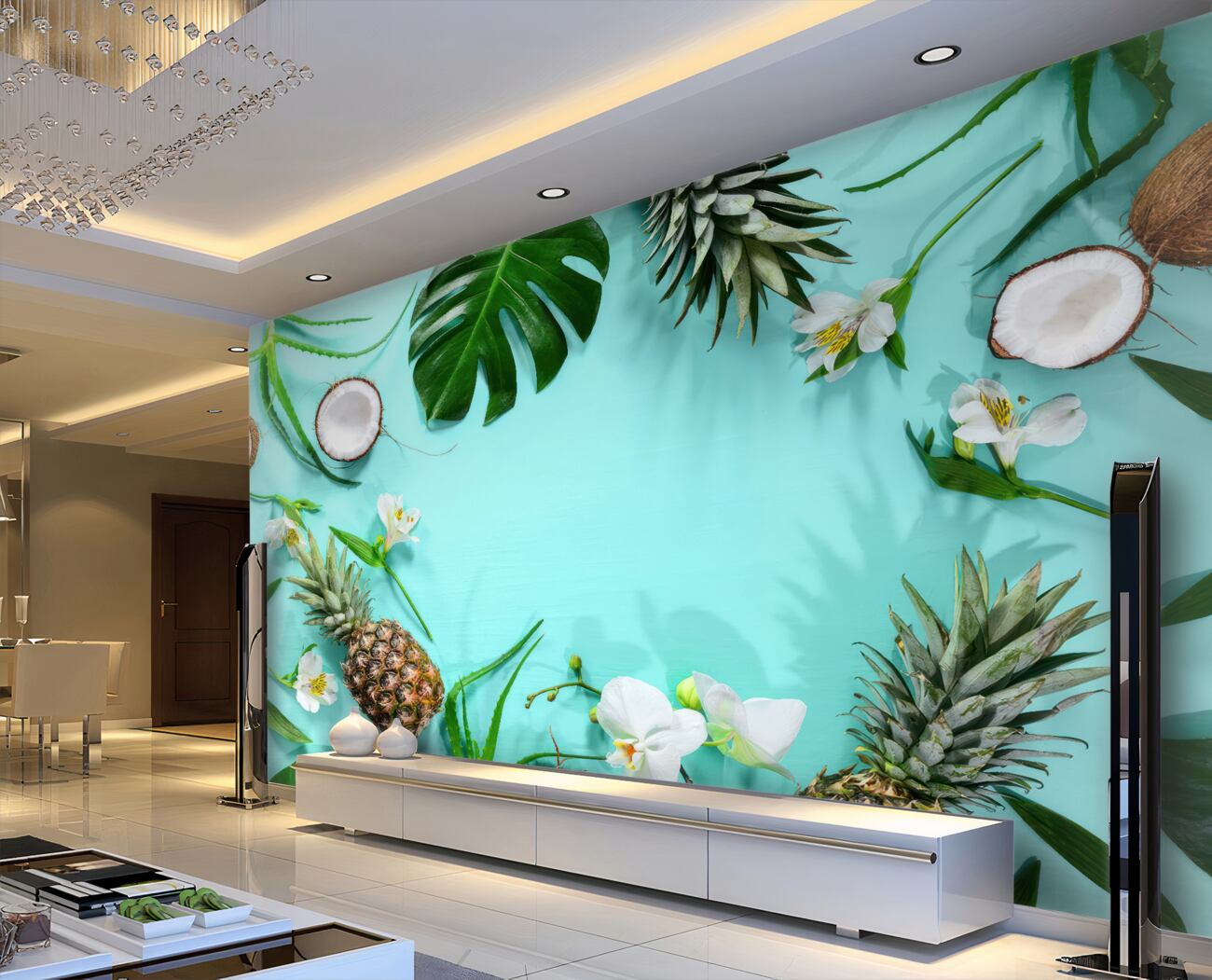 Tapeta Fototapeta Ananas i kokos na wodzie (artykuł a99253 ) z kategorii Fototapety Jedzenie i napoje