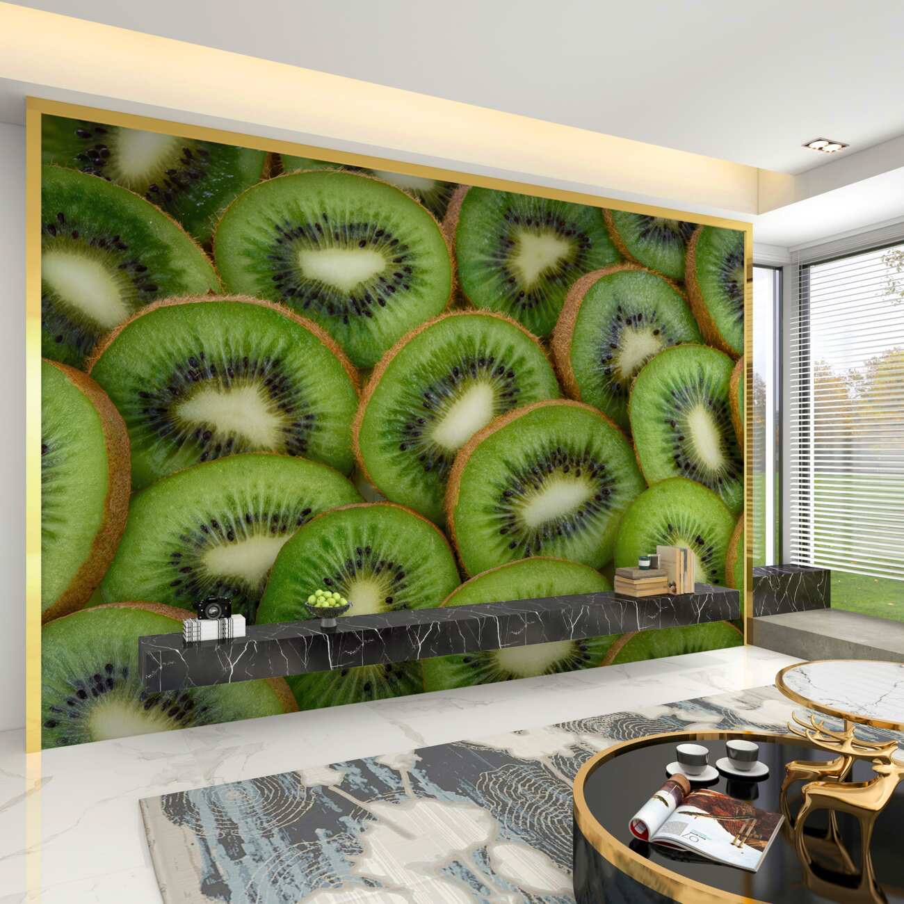 Tapeta Fototapeta Dojrzałe kawałki zielonego kiwi (artykuł a99252 ) z kategorii Fototapety Jedzenie i napoje