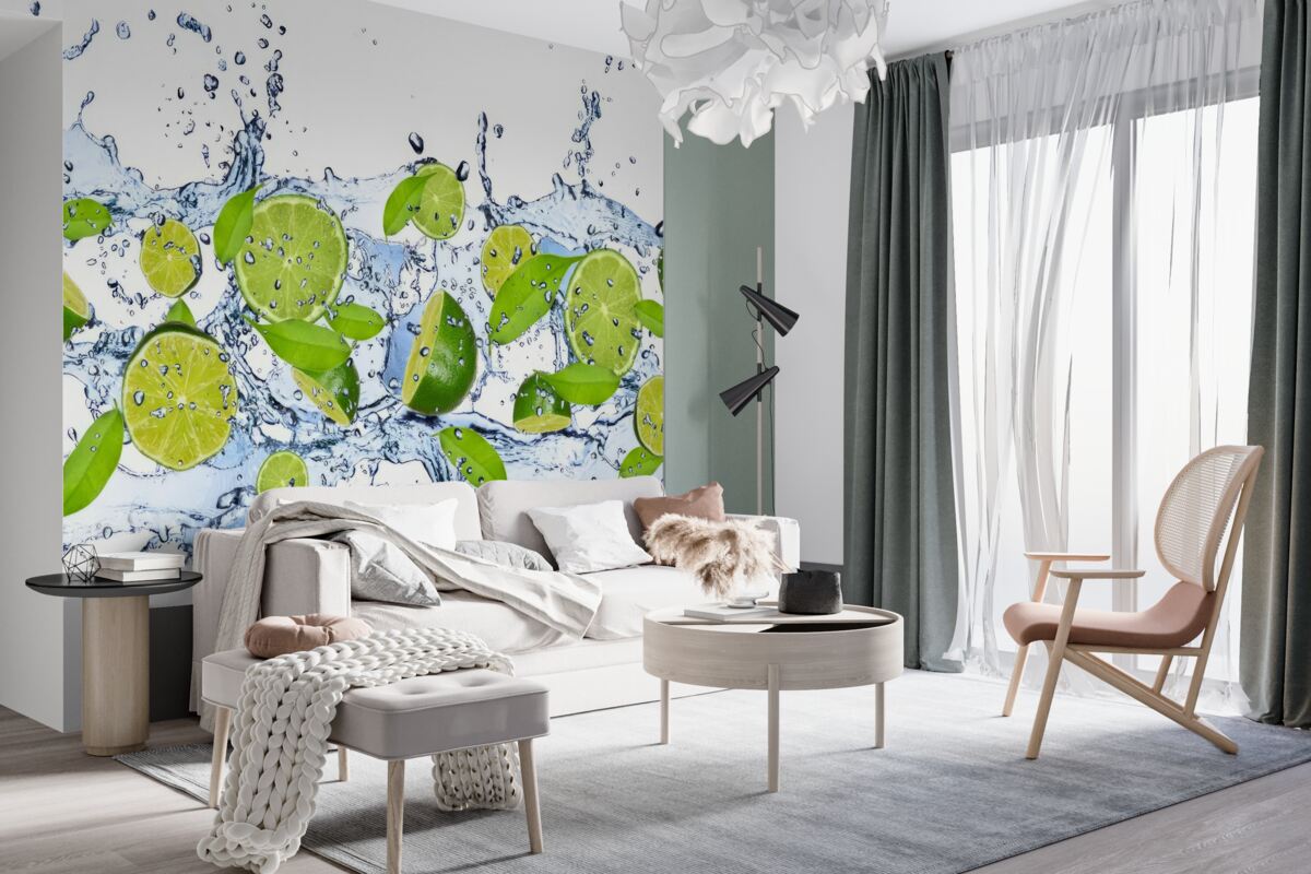 Tapeta Fototapeta Pokrój limonki w wodzie (artykuł a97791 ) z kategorii Fototapety Jedzenie i napoje