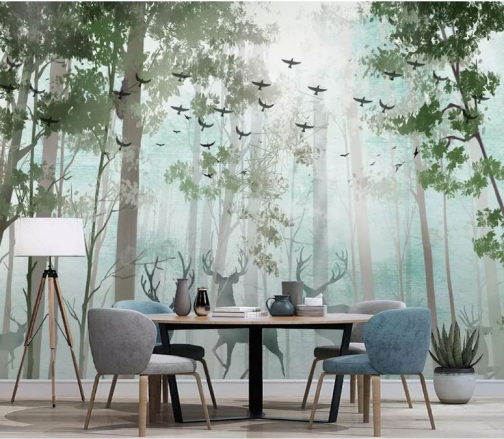 Tapeta Fototapeta Jeleń i ptaki w lesie (artykuł a94549 ) z kategorii Fototapety 3D
