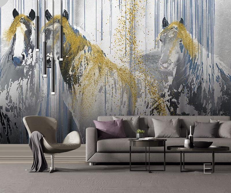 Tapeta Fototapeta koni złote niebieskie (artykuł a343 ) z kategorii Fototapety Konie
