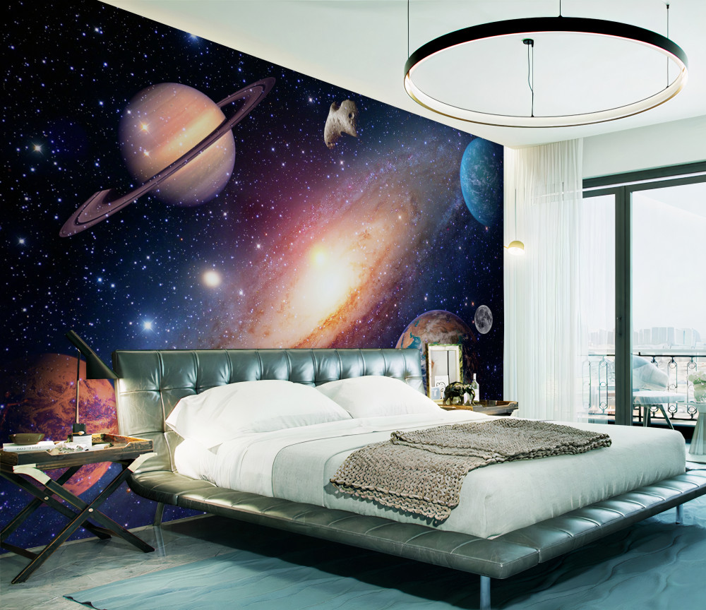 Tapeta Fototapeta galaktyka z planetami (artykuł a89353 ) z kategorii Fototapety Kosmos