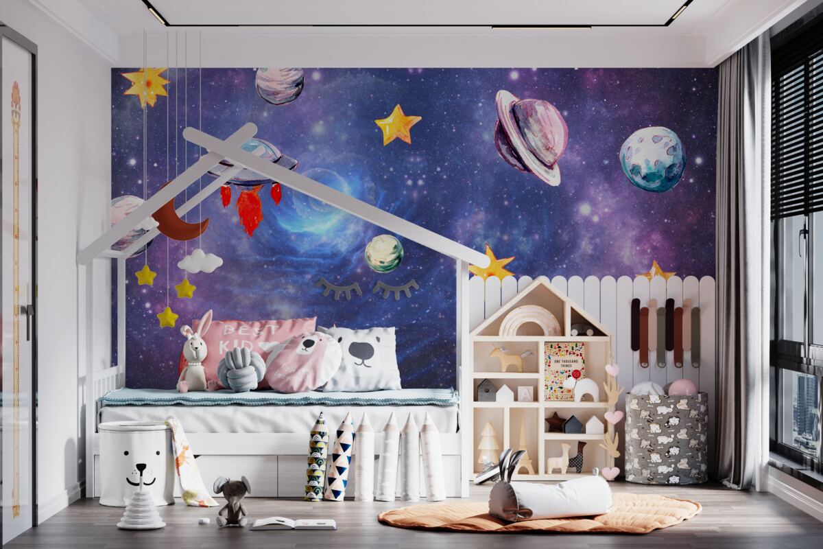 Tapeta Fototapeta Mieszkańcy kosmosu i planety (artykuł a98750 ) z kategorii Fototapety Kosmos