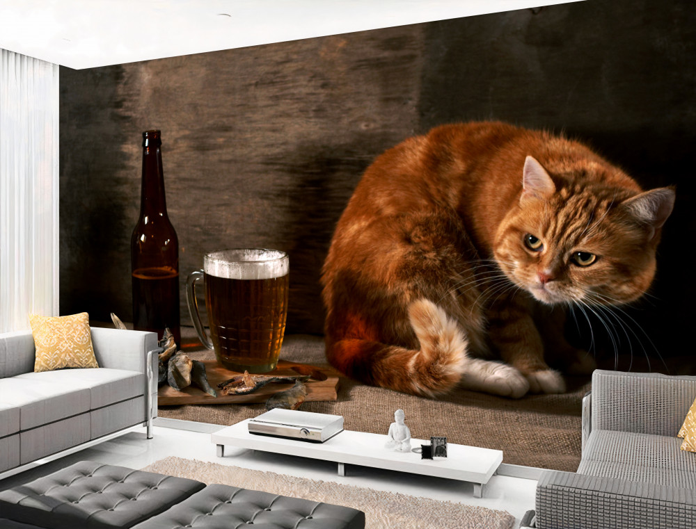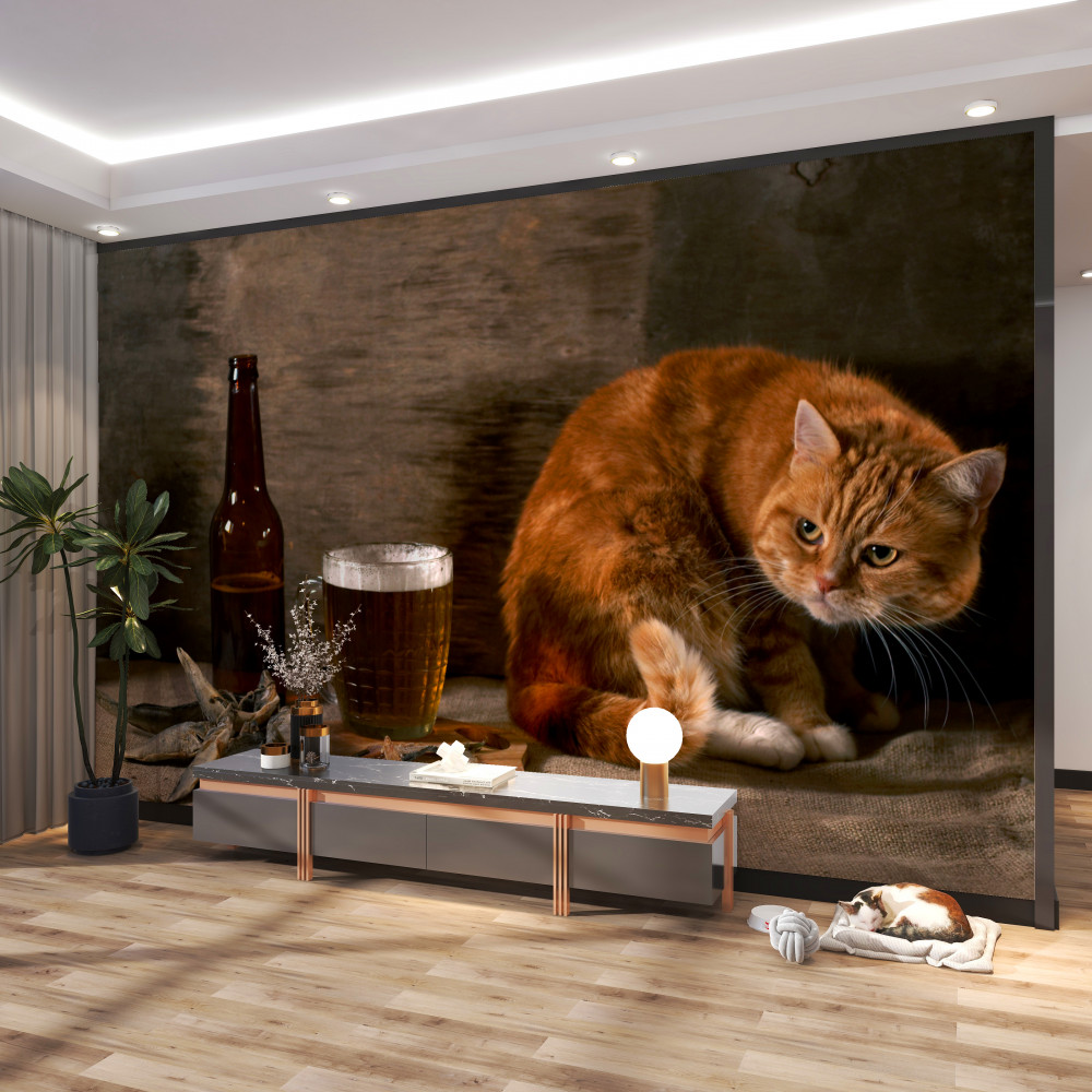 Tapeta Fototapeta czerwony kot i pokusa ryby (artykuł a92447 ) z kategorii Fototapety Koty