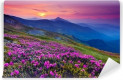 Jasne kwiaty na górskich wzgórzach o świcie
