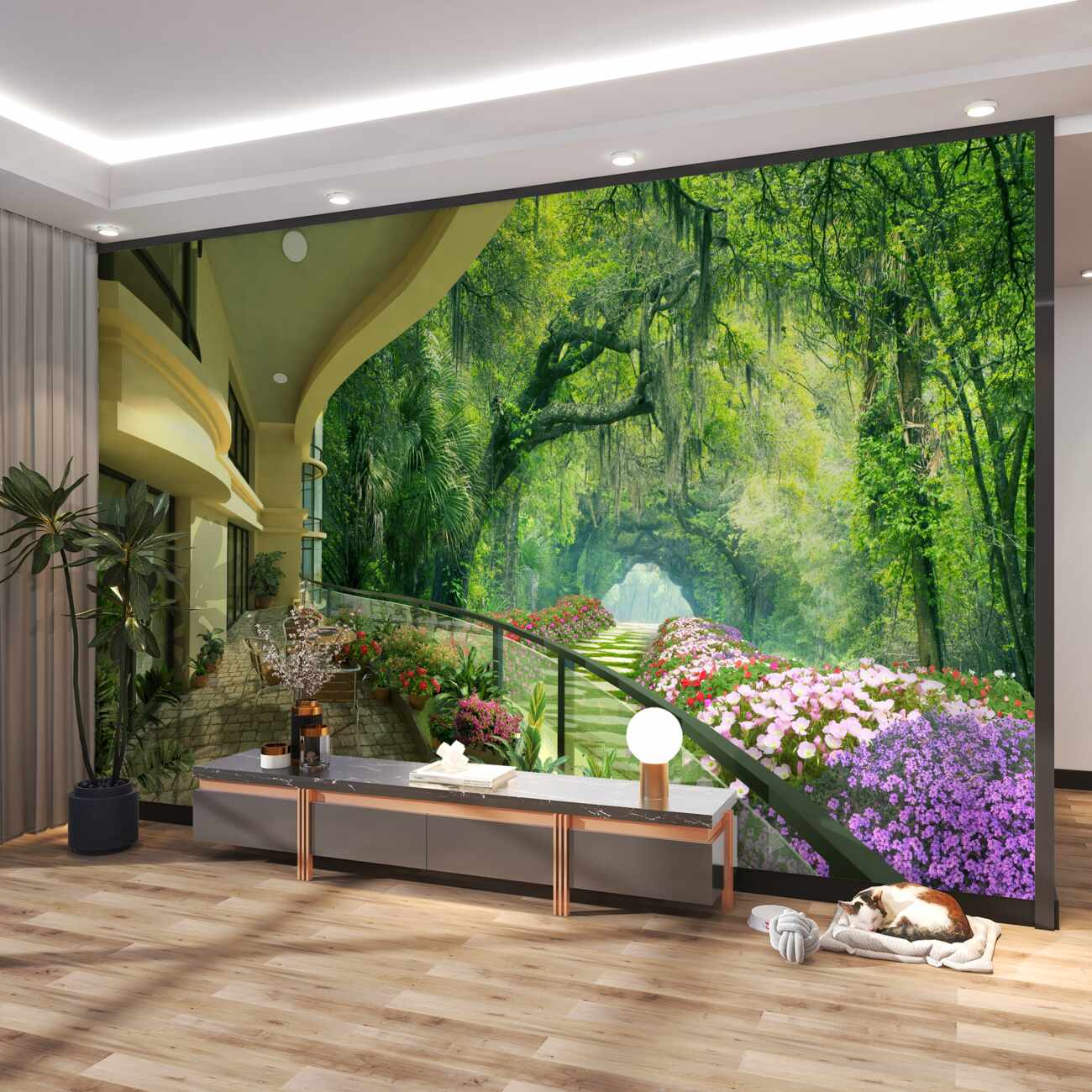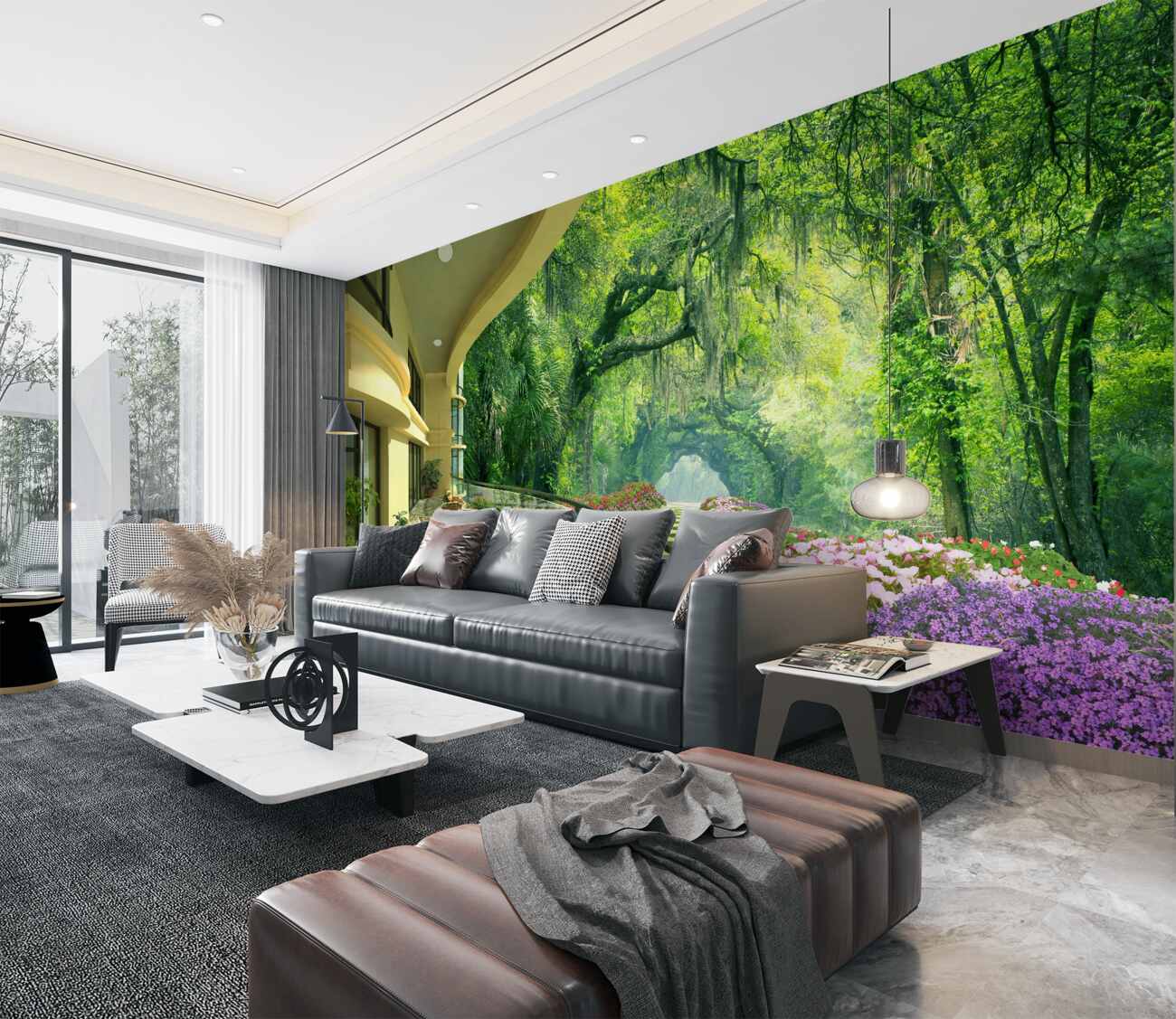 Tapeta Fototapeta Nowoczesny dom w zielonym lesie (artykuł a99862 ) z kategorii Fototapety Krajobrazy