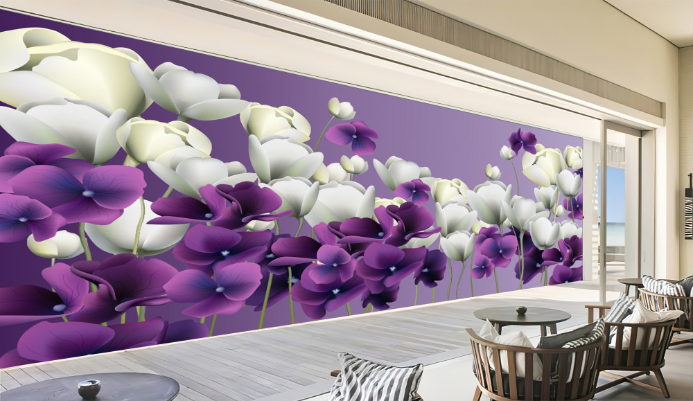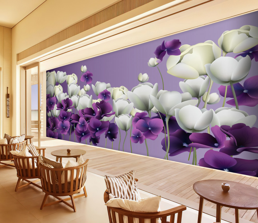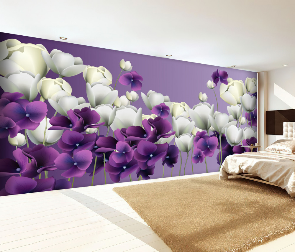 Tapeta Fototapeta białe i fioletowe kwiaty (artykuł a91549 ) z kategorii Fototapety Kwiaty 3D