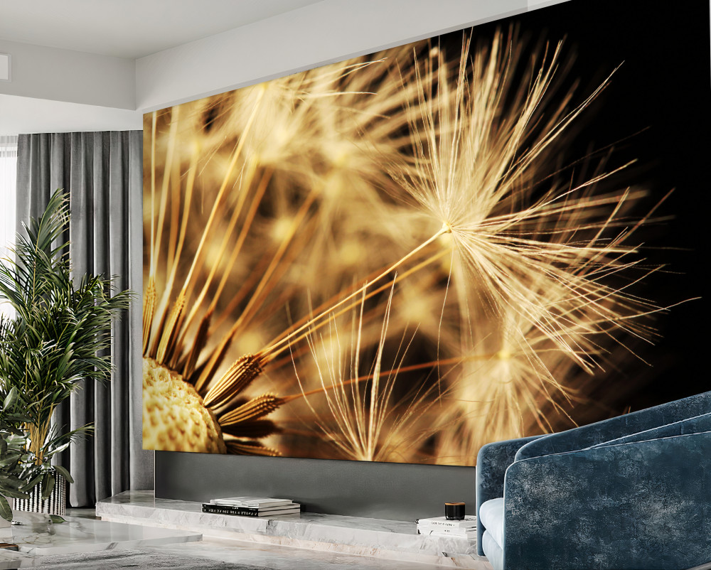 Tapeta Fototapeta białe kwiaty mniszka lekarskiego na czarnym tle (artykuł a89273 ) z kategorii Fototapety Kwiaty 3D