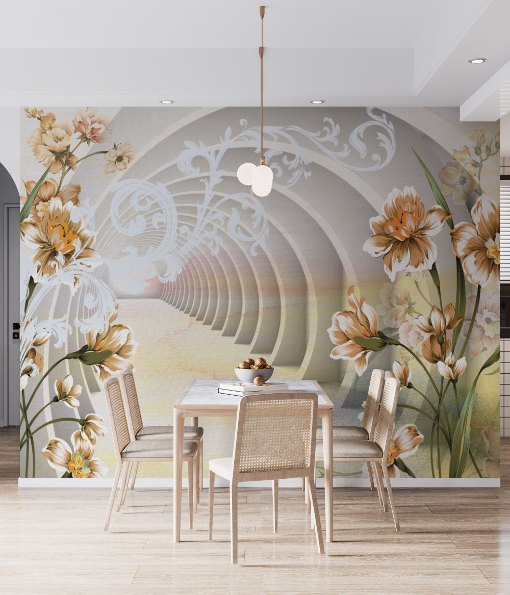 Tapeta Fototapeta białe łuki z kwiatami (artykuł a89542 ) z kategorii Fototapety Kwiaty 3D
