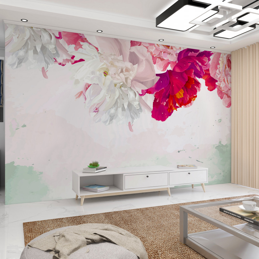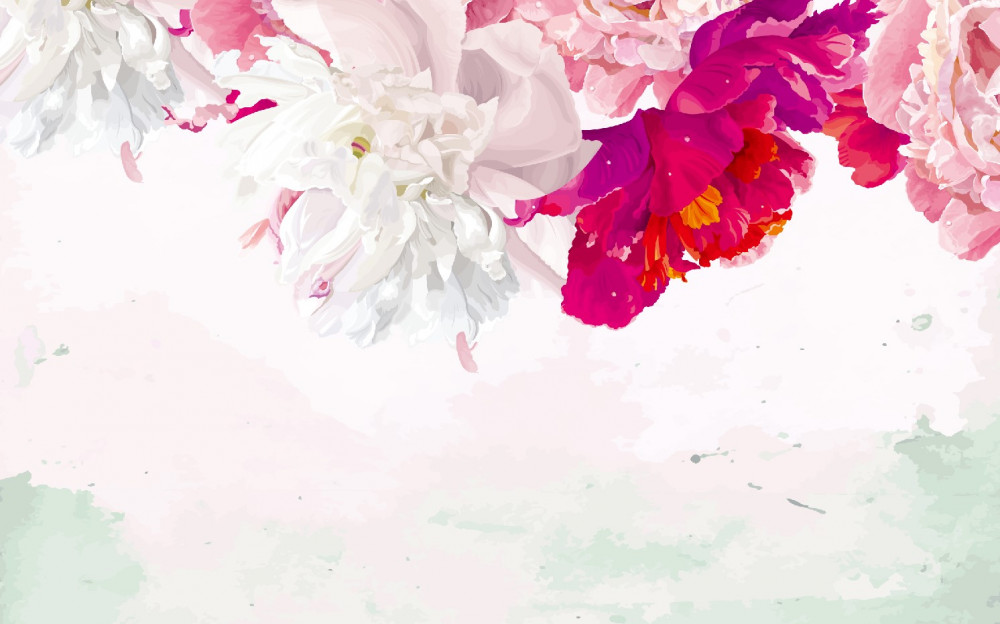 Tapeta Fototapeta białe tło z jasnymi kwiatami (artykuł pb1130 ) z kategorii Fototapety Kwiaty 3D