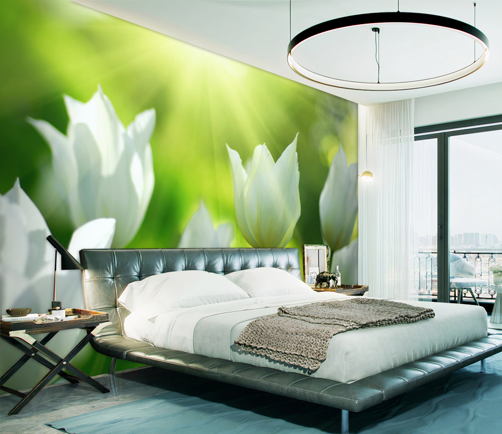 Tapeta Fototapeta białe tulipany w słońcu (artykuł a92350 ) z kategorii Fototapety Kwiaty 3D